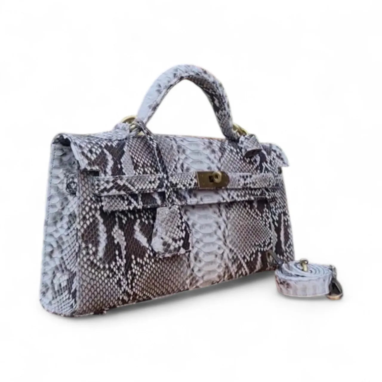 Introducing this exquisite Genuine Python Clutch, a masterpiece fashioned from authentic python snake skin. The material's elegant scale pattern and luxurious finish exemplify understated refinement and impeccable taste. Renowned for its durability and supple quality, python leather gracefully ages, developing a subtle patina that enhances its character over time. This clutch seamlessly transitions from evening galas to intimate gatherings, serving as a statement piece for those who appreciate genuine craftsmanship and premium materials.