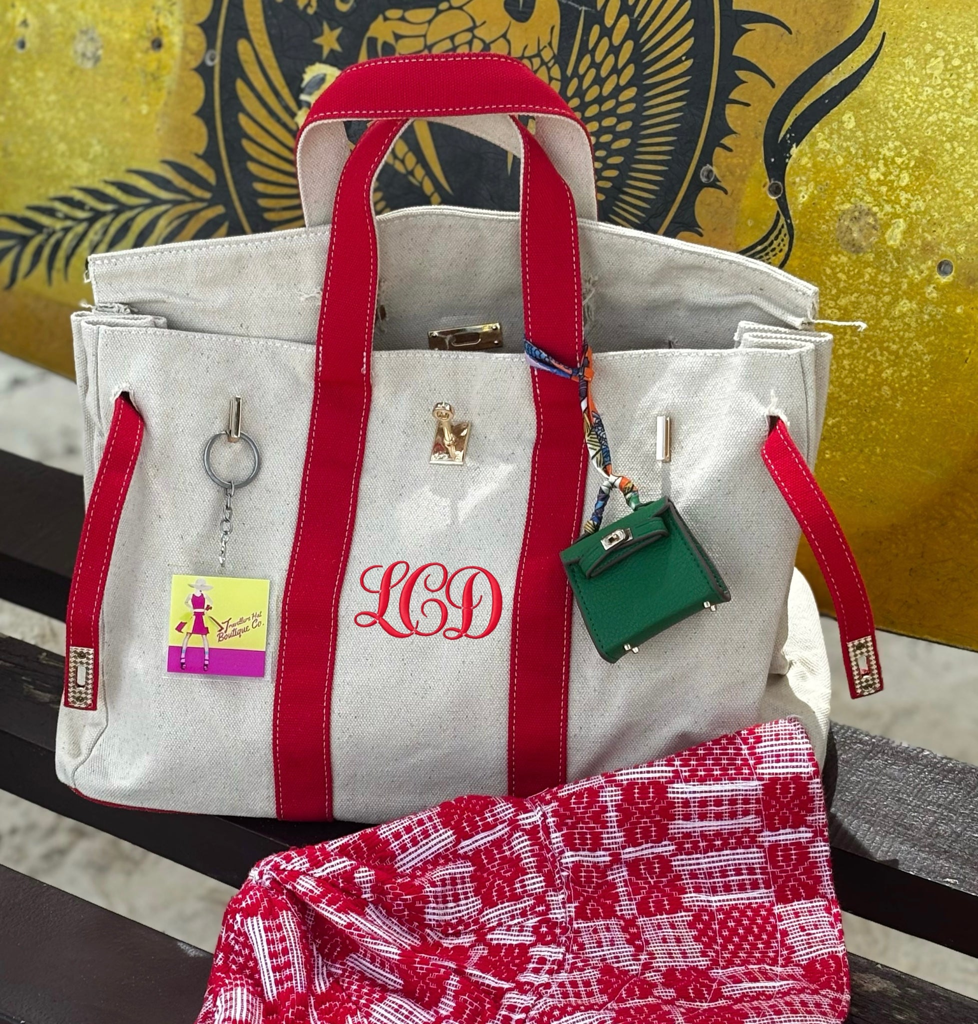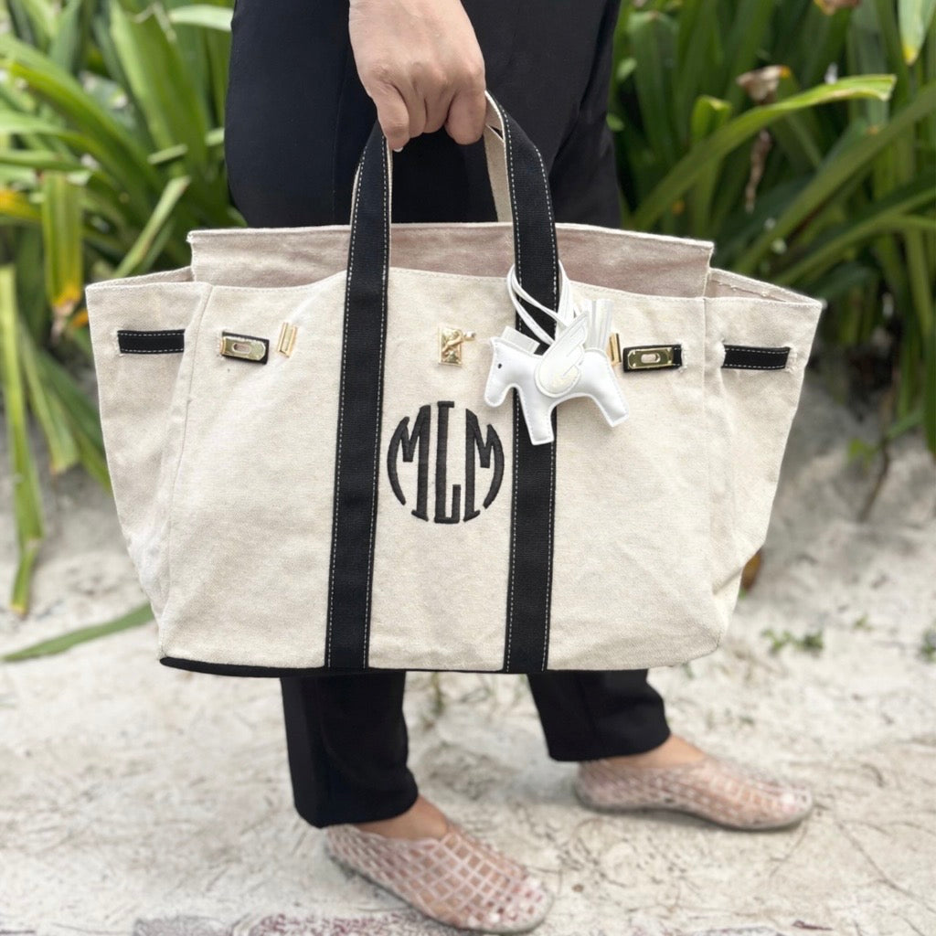 Boatkin style that's everywhere right now—and for good reason. Constructed from sturdy premium canvas, it balances durability with a fun, modern two-tone aesthetic. Add your personal monogram through custom embroidery and you've got a bag that's genuinely yours.